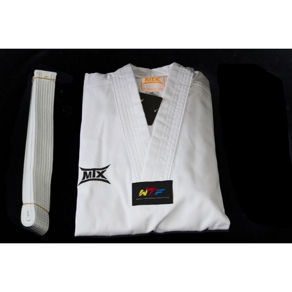 Ce dobok col blanc, est dès plus sobre et simple, néanmoins sa qualité en fait un dobok haute gamme à un prix abordable.